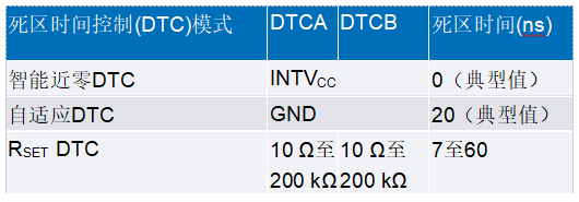在某些情況下,設(shè)計人員可能會選擇或被要求使用一定量的死區(qū)時間。LTC7890和LTC7891具有三種死區(qū)時間控制模式,如表1所示。智能近零死區(qū)時間伺服模式以嚴(yán)格的時序控制適當(dāng)?shù)臇艠O,確保不會殘留任何破壞性的能量水平。自適應(yīng)柵極到柵極死區(qū)時間模式使用柵極本身存在的開爾文檢測閾值,將死區(qū)時間穩(wěn)定控制在默認(rèn)的20 ns。RSET可編程死區(qū)時間模式使用相同的內(nèi)部邏輯,但允許將默認(rèn)的20 ns值在7 ns到60 ns范圍內(nèi)進行精密調(diào)整。如果使用另外兩種配置中的任一種,則需要使用柵極信號將觸發(fā)閾值設(shè)置為1 V,以驗證時序是否按預(yù)設(shè)執(zhí)行。