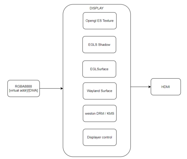 調試階段常使用 OpenCV 的 imshow 顯示圖像,但其依賴 CPU 參與,無法滿足實時性要求。系統(tǒng)實際采用 DRM 顯示框架與 Weston 桌面環(huán)境,因此我們選用 Wayland-client 方案進行直接顯示,實現(xiàn) GPU 直顯。