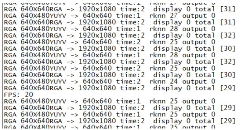 rknn_outputs_get 獲取數據后即可進行內部處理,檢測出目標,坐標,信心指數,根據實際需求繪制在屏幕上,這一步可以多進程異步處理,不算在串行時間內,筆者測試大概會多花8ms左右。