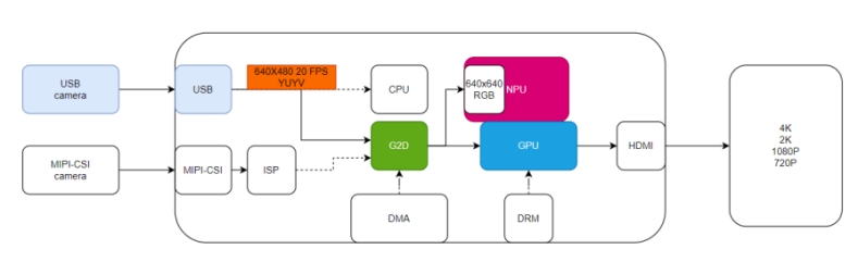 · 實時性:完成從攝像頭采集 → NPU推理 → 屏幕顯示的完整流程,耗時不超過攝像頭一幀的時間。