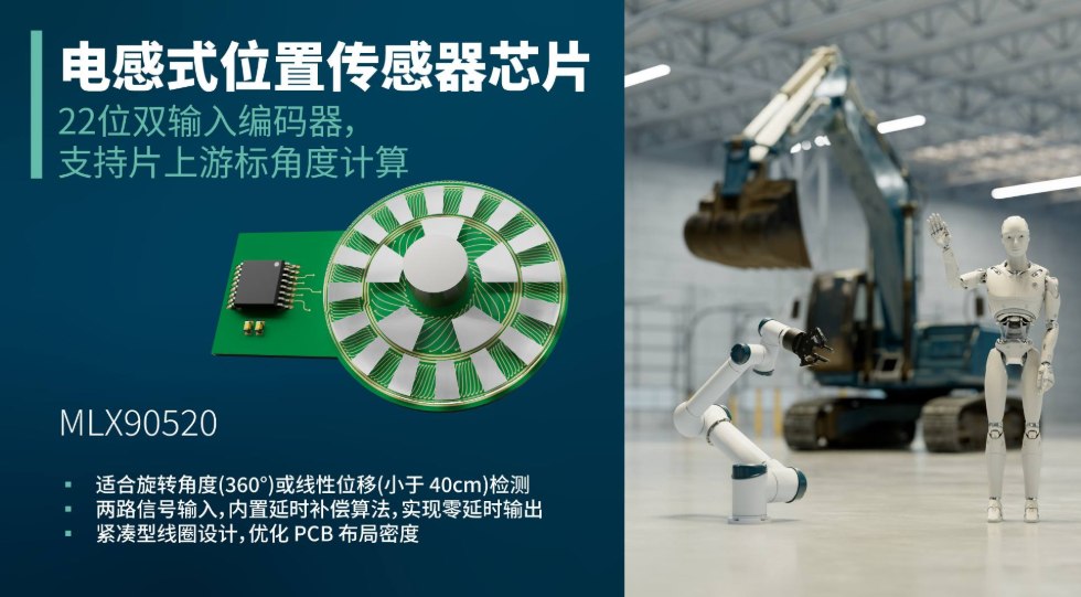 2026年01月23日,比利時(shí)泰森德洛·哈姆——全球微電子工程公司Melexis宣布,推出一款具備22位高分辨率的電感式編碼器芯片——MLX90520。該市場標(biāo)桿級產(chǎn)品可完美適配旋轉(zhuǎn)及線性運(yùn)動(dòng)場景,能夠充分滿足機(jī)器人以及直徑范圍在20至200毫米的大型機(jī)械關(guān)節(jié)對高精度、高性價(jià)比位置檢測的需求。