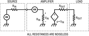 不過,很多放大器是用噪聲指數(shù)而不是輸入噪聲電壓規(guī)定噪聲特性的。用設(shè)定等于Rin的電源阻抗規(guī)定噪聲指數(shù)(見圖5)。