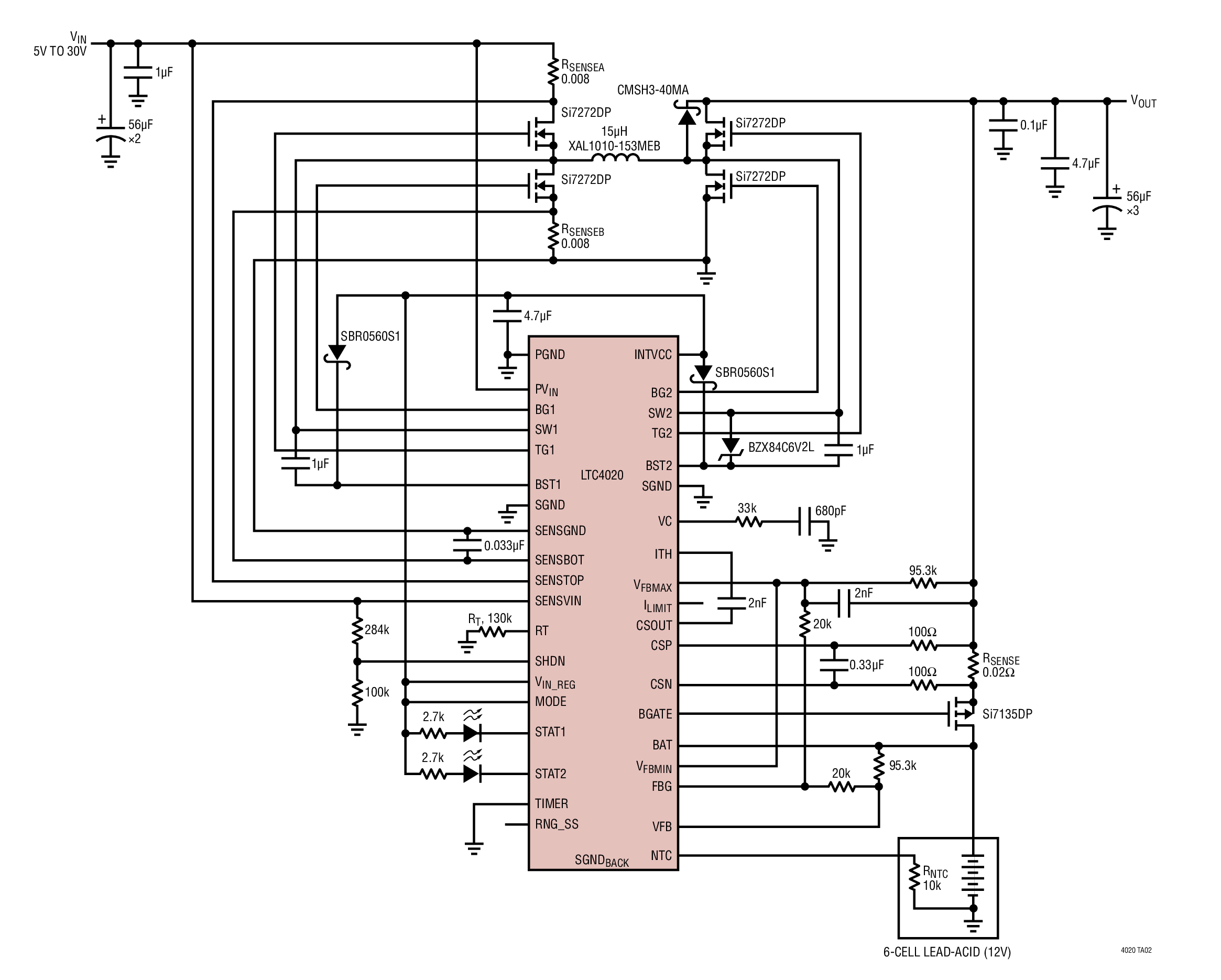 LTC4020 5V~30V 至 6 節(jié)鉛酸電池 PowerPath 充電器
