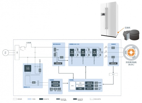 在新的超低溫冰柜設(shè)計(jì)中使用基于BLDC的壓縮機(jī)的好處是電源效率提高、自發(fā)熱量降低、功率因數(shù)校正。BLDC電機(jī)在將電能轉(zhuǎn)化為物理做功方面比感應(yīng)電機(jī)更高效。BLDC電機(jī)產(chǎn)生的熱量顯著降低,因此制冷系統(tǒng)中進(jìn)入的熱量更少,從而可實(shí)現(xiàn)更高效的冷卻。BLDC電機(jī)可以通過使用功率因數(shù)校正技術(shù)使其在功率因數(shù)為1的情況下運(yùn)行,從而降低視在功率的損耗。