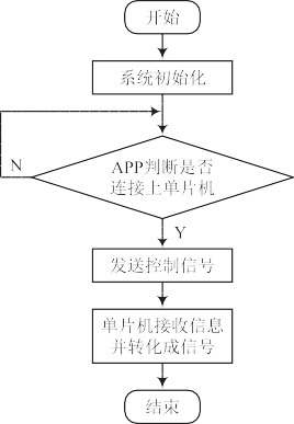 手機(jī) APP 的功能主要包括控制界面的設(shè)計(jì)、手機(jī)與電磁門(mén)鎖系統(tǒng)連接狀態(tài)的判斷與顯示、電磁門(mén)鎖的打開(kāi)與關(guān)閉控制等。手機(jī) APP 控制主程序流程如圖 3 所示。