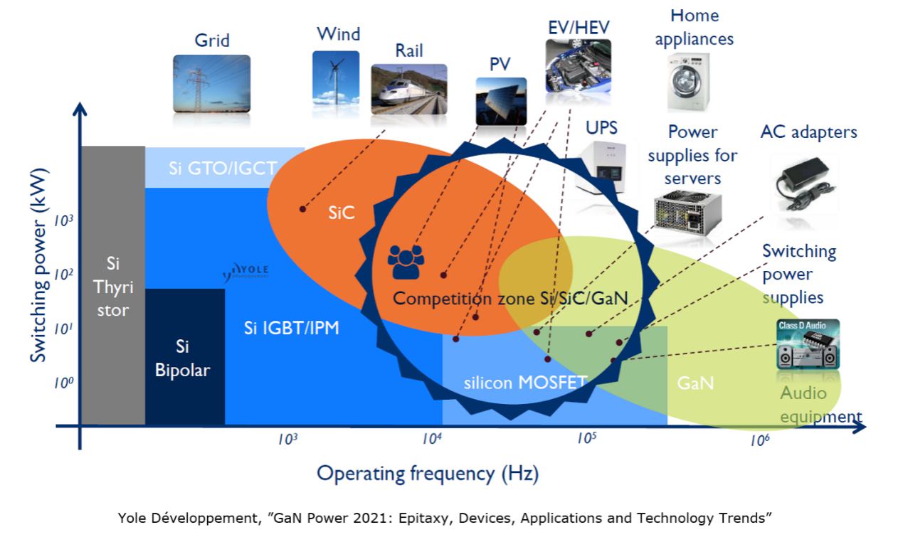 功率器件作為半導(dǎo)體產(chǎn)業(yè)的重要組成部分,擁有非常廣泛的技術(shù)分類以及應(yīng)用場景。例如,傳統(tǒng)的硅基二極管、IGBT和MOSFET等產(chǎn)品經(jīng)過數(shù)十年的發(fā)展,占據(jù)了絕對領(lǐng)先的市場份額。不過,隨著新能源汽車、數(shù)據(jù)中心、儲能、手機(jī)快充等應(yīng)用的興起,擁有更高耐壓等級、更高開關(guān)頻率、更高性能的新型SiC、GaN等第三代半導(dǎo)體功率器件逐漸嶄露頭角,獲得了業(yè)界的持續(xù)關(guān)注。