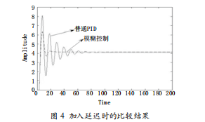 加入延遲環(huán)節(jié)的常規(guī)PID與模糊自整定PID的仿真結(jié)果如圖4所示。