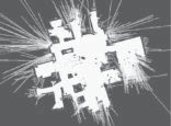傳統(tǒng)的定位導航多單純使用 GPS 定位技術或單純使用雷達定位技術進行自動巡航。本設計定位導航部分結合了 GPS定位技術 [2] 與雷達定位技術 [3],利用 GPS 進行大概定位(精度 2.5 m),利用雷達激光掃描進行精確定位(精度 1 cm,有效半徑 12 m)。利用 GPS 可以在任何有網(wǎng)絡信號覆蓋的地方進行定位,范圍較廣,同時針對其精度低、信號易被遮蓋的缺點,結合使用雷達激光掃描提高定位精度 ;并且在 GPS 信號被建筑物或樹木遮蔽時,可以單獨使用雷達激光掃描進行定位,即使在室內也可進行自動巡航,大大提高定位適用范圍。雷達室內掃描效果圖如圖 2 所示。因室內 GPS 信號被遮蓋,故小車定位導航只依靠激光雷達,該效果圖顯示了室內雷達掃描建模的效果。