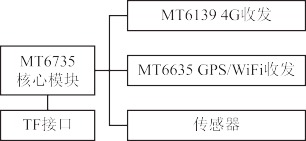 由圖 1 可知,在設(shè)計上以 MT6735 模塊作為核心部分, 將其連接至 4G 收發(fā)模塊、GPS/WiFi 模塊、傳感器等模塊。