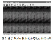 目前,該內(nèi)核示例已經(jīng)在Bochs模擬軟件中運(yùn)行測(cè)試過(guò),測(cè)試結(jié)果如圖3所示。