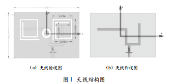 圖1給出了該天線的整體結(jié)構(gòu)示意圖。其中圖1 (a)為天 線俯視圖,圖1 (b)為天線仰視圖。