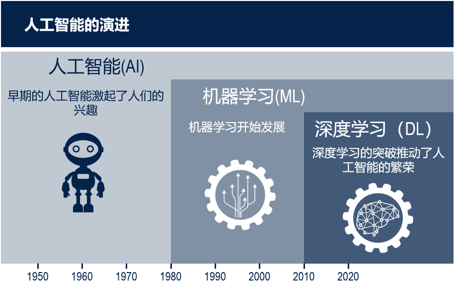 結(jié)合人工智能技術(shù)的發(fā)展階段,現(xiàn)將一些主要概念大致解釋如下。