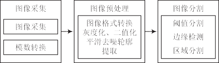 圖中圖像預(yù)處理過程是最為關(guān)鍵的也是最復(fù)雜困難的一個(gè)環(huán)節(jié),會將圖像中一些不重要的數(shù)據(jù)信息去除,對圖像識別效果影響最大[10]。圖像預(yù)處理包括對圖像進(jìn)行灰度化處理、二值化處理、平滑去噪及輪廓提取等操作?;叶然幚頃D像中的各像素點(diǎn)的灰度值根據(jù)需求,經(jīng)某一灰度化公式處理后得到成像效果 [11]。二值化處理比較簡單,只需將圖像中像素點(diǎn)的灰度值均設(shè)置為 0 或 255 即可,最后圖像呈現(xiàn)的效果即為黑與白 [12]。去噪處理是將圖像中的一些噪聲及沒用的干擾信息去除,突出需要的圖像內(nèi)容,從而使人們能直觀清晰地看到需求信息。輪廓提取是突出目標(biāo)圖像對象的邊緣輪廓信息,使人們可以僅從圖像中的形狀邊緣特征就看出圖像的信息內(nèi)容。