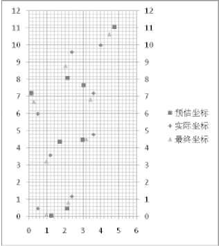 復(fù)雜環(huán)境中,測(cè)出的距離數(shù)據(jù)經(jīng)過(guò)DFP求精計(jì)算后的坐標(biāo)比初始坐標(biāo)也有更好的精度,最優(yōu)情況能達(dá)到0.22m,而在矩形區(qū)域的邊緣部分精度有所下降,控制在0.8m以?xún)?nèi),如圖4所示。