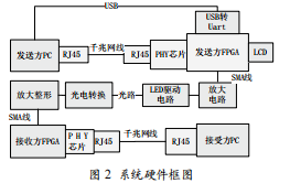 對于多路輸出情形,只需在發(fā)送方FPGA的輸出端再添加一路接收系統(tǒng)即可。這些系統(tǒng)包括光路系統(tǒng)、接收方FPGA、PHY芯片、網線和帶有網卡的接收方PC。