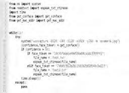 用戶備忘的內(nèi)容最終要通過(guò)語(yǔ)音的方式從便攜式音響中讀出,為此本文在樹(shù)莓派上安裝 eSpeak軟件作為一款開(kāi)源軟件,便于將文字轉(zhuǎn)為語(yǔ)音讀出。在此基礎(chǔ)上,利用 eSpeak 讀取文本文件里的內(nèi)容,從而將用戶備忘的內(nèi)容讀出。調(diào)用API進(jìn)行人臉識(shí)別及將備忘信息語(yǔ)音讀出的主要 Python程序如圖 8 所示,其中 get_conface是通過(guò) API向 Face++平臺(tái)服務(wù)器請(qǐng)求 Search功能并將返回值中的 confidence與 face_ token提取出來(lái)的函數(shù),espeak_txt_chinese是將指定文本中的內(nèi)容通過(guò) eSpeak 軟件語(yǔ)音讀出的函數(shù)。