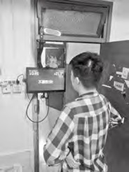 系統(tǒng)測(cè)試時(shí),模擬有兩名家庭成員的情景,APP 界面如圖 10 所示。兩名成員都先后發(fā)送了自己的備忘信息,模擬出門(mén)場(chǎng)景。兩名成員先后出門(mén),出門(mén)時(shí)看“魔鏡”上的天氣、時(shí)間及問(wèn)候語(yǔ),其出門(mén)場(chǎng)景分別如圖 11、圖 12 所示,系統(tǒng)正確地讀出了相應(yīng)的備忘信息。測(cè)試到有效的人臉識(shí)別范圍為距攝像頭兩米以內(nèi),符合實(shí)際要求。