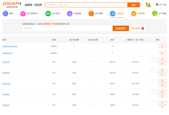 不僅型號(hào)的價(jià)格、庫存、品牌等信息都直接顯示,價(jià)格直觀,保障正品和低價(jià),幫工程師規(guī)避小批量采購過程中,假貨殘次品橫行的問題。而且,正是因?yàn)橛凶銐虻膸齑姹U?,在世?qiáng)元件電商,購買小批量產(chǎn)品,可以滿足2-5個(gè)工作日內(nèi)快速到貨,大大保障工程師的研發(fā)進(jìn)程。