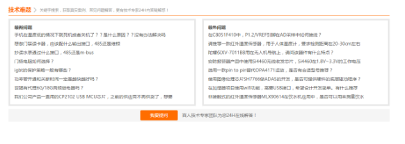 而對(duì)于工程師研發(fā)的困難和疑難,世強(qiáng)元件電商的解決方式更是簡單明了。第一,整理數(shù)萬個(gè)研發(fā)中的真實(shí)問題,工程師基本不用問,直接搜索即可有答案。第二,把原廠的資深技術(shù)專家、世強(qiáng)元件電商的技術(shù)專家還有外部的技術(shù)大神共計(jì)近千名匯聚到一起,專門在線解答工程師提出的新問題。