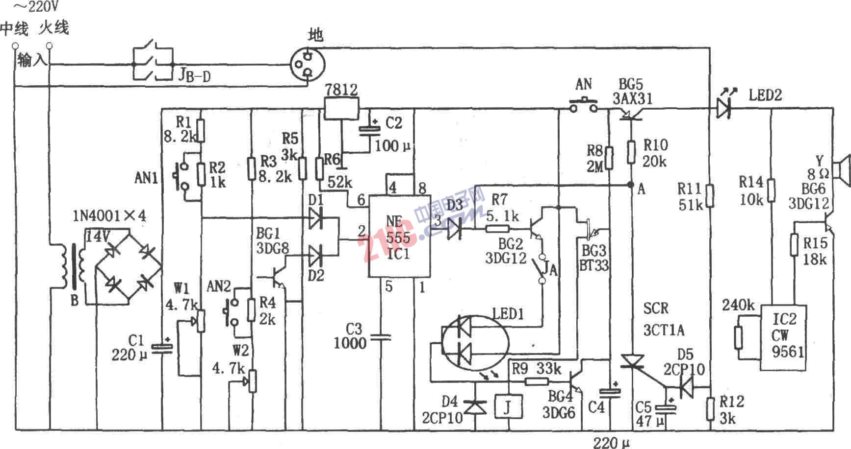 如圖所示為全自動電冰箱保護(hù)器電路。該保護(hù)器由降壓整流電路、欠壓與過壓控制電路、延時電路、漏電檢測電路和聲光報警電路等組成。其 中降壓整流電路為整個電路提供直流電壓。