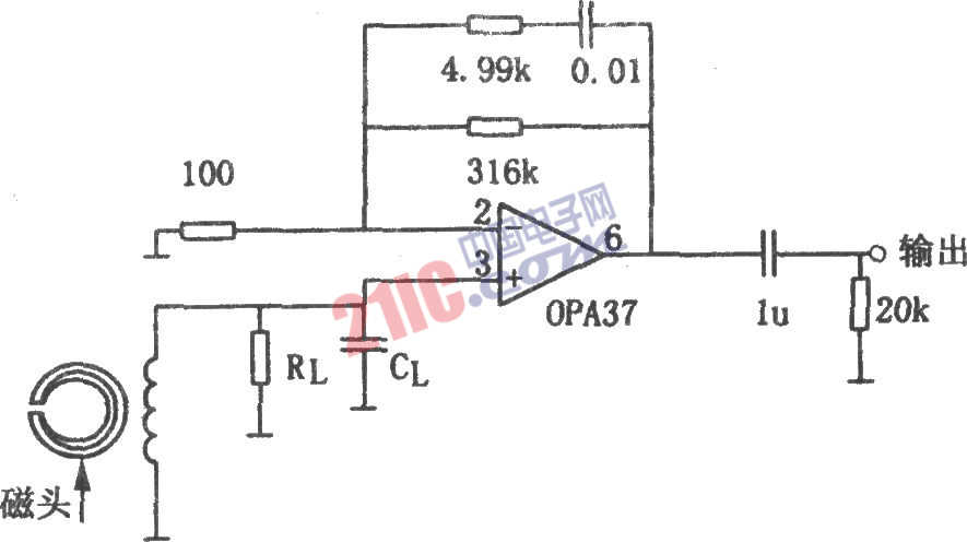 如圖所示為NAB磁頭前置放大電路。該電路選用超低噪聲精密運(yùn)放OPA37組成的磁頭前置運(yùn)放。該電路能提供標(biāo)準(zhǔn)的NAB均衡.在1kHz時(shí)其電壓放大倍數(shù)為50dB。音頻輸入信號(hào)由磁頭裝置拾取并送入OPA37的同相輸入端,這種連接方式使運(yùn)放具有高輸入阻抗,即OPA37的引腳3到地可近似為開(kāi)路,電路中RL、CL組成磁頭的負(fù)載阻抗,其阻值和容量可依據(jù)磁頭裝置的特性確定(一般應(yīng)選用磁頭生產(chǎn)廠家推薦的數(shù)值)。電路中的阻、容元件應(yīng)選用高質(zhì)量的金屬膜電阻和有機(jī)合成膜電容。