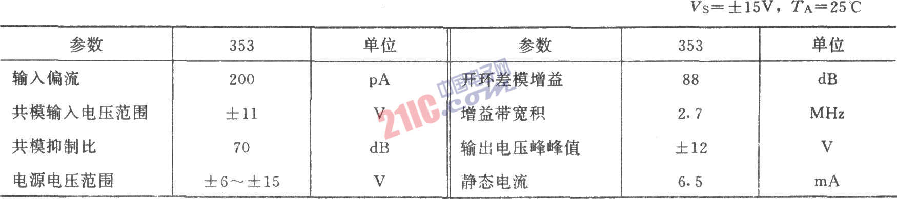 集成雙運(yùn)放353的主要參數(shù)(典型值):