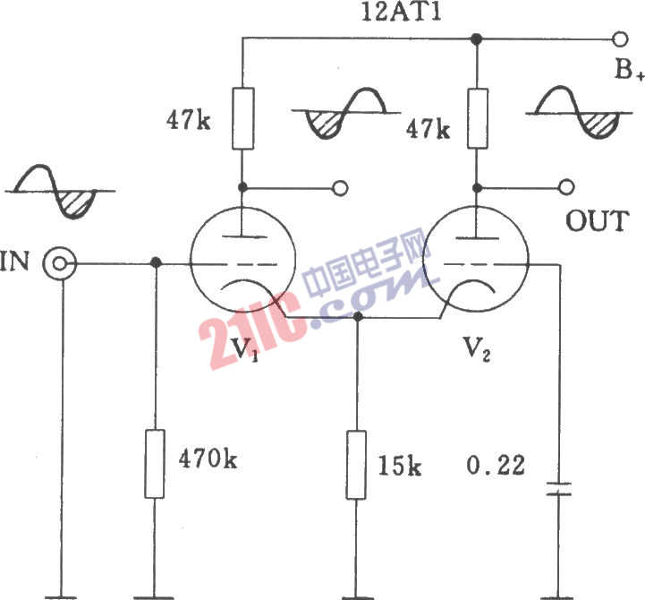 電子管差分式共陰倒相電路: