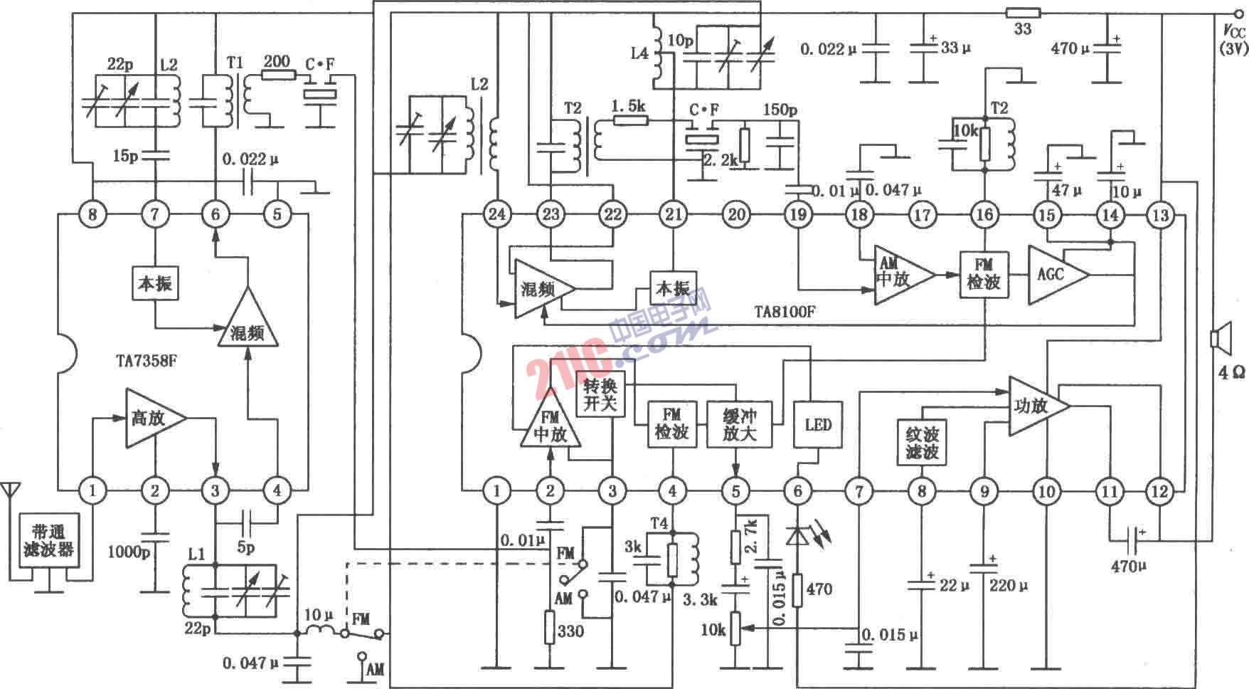 TA8100N/8100F FM/AM單片收音機(jī)電路