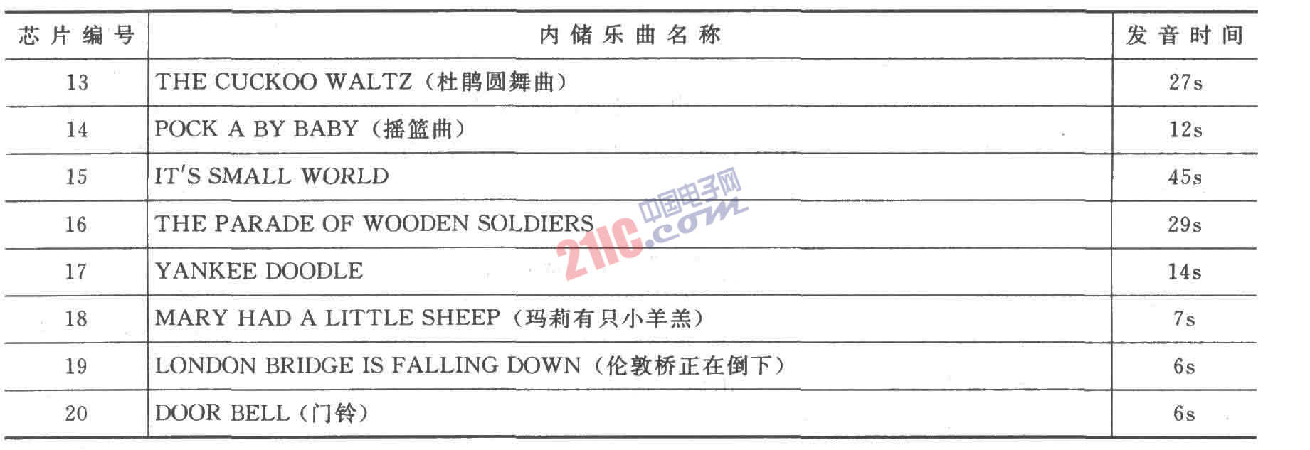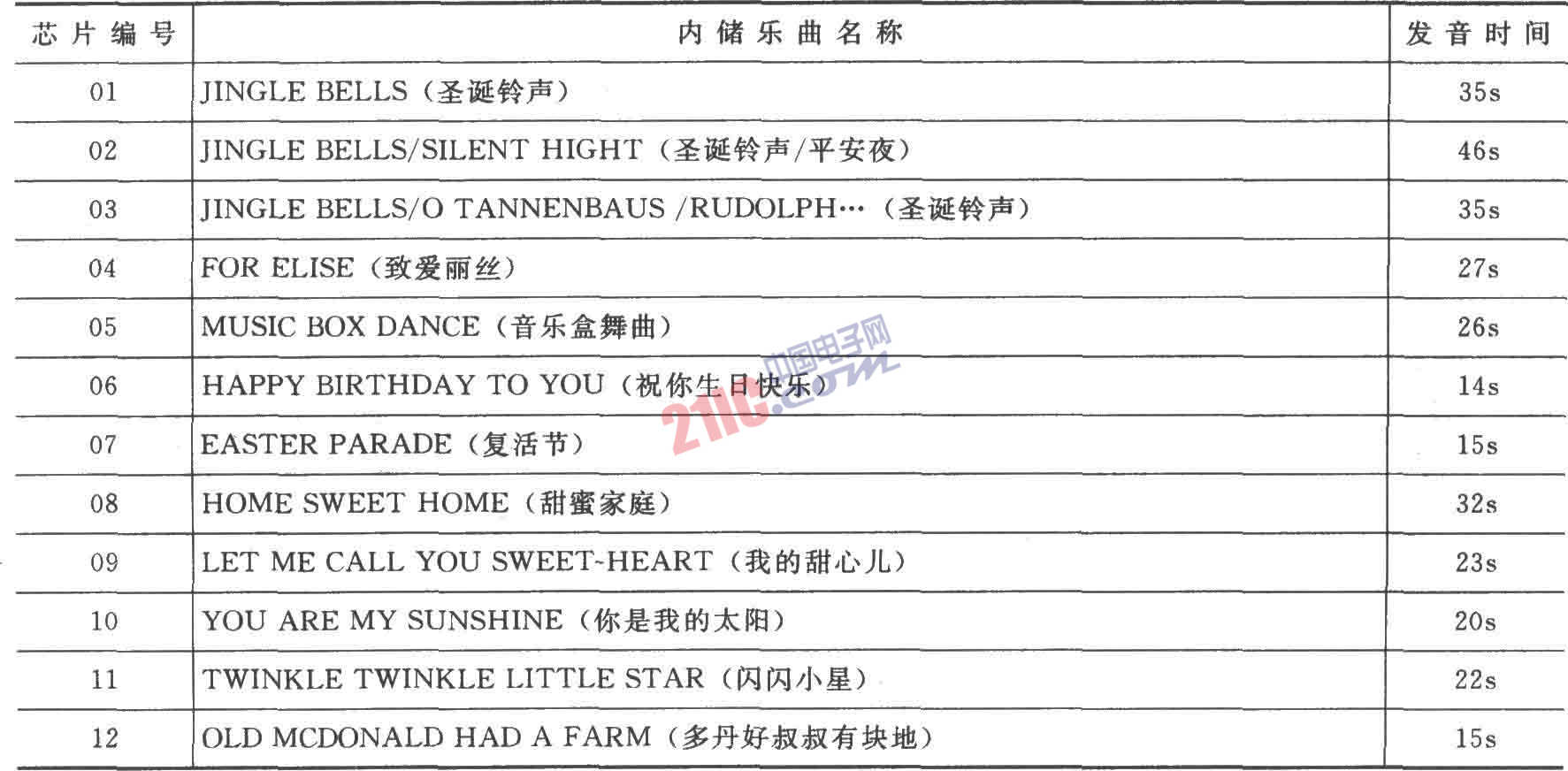 VT66/66A內(nèi)儲(chǔ)樂(lè)曲名和芯片編號(hào)關(guān)系: