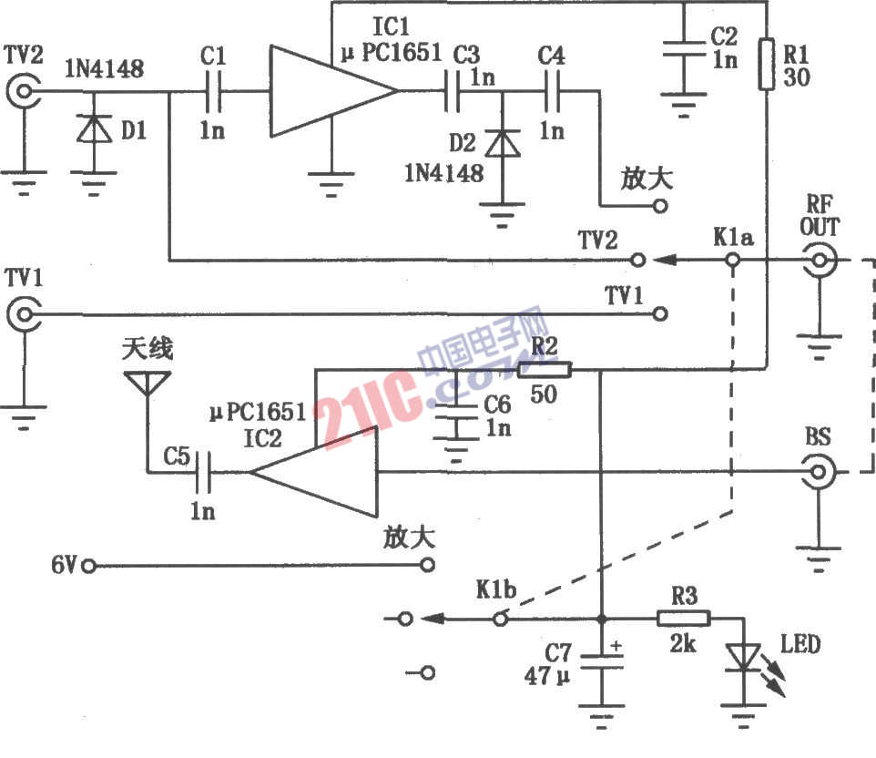 電視信號(hào)轉(zhuǎn)換放大電路圖