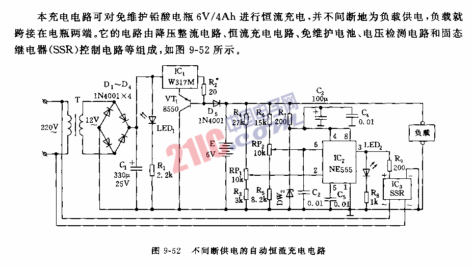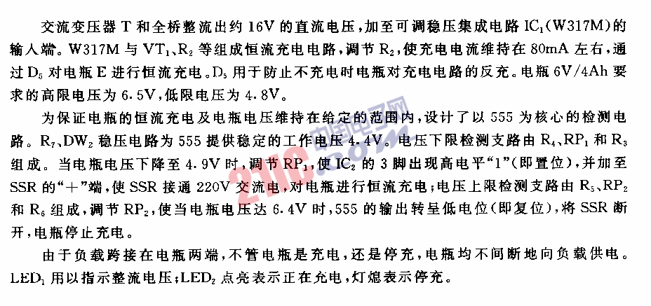 555不間斷供電的自動(dòng)恒流充電電路圖