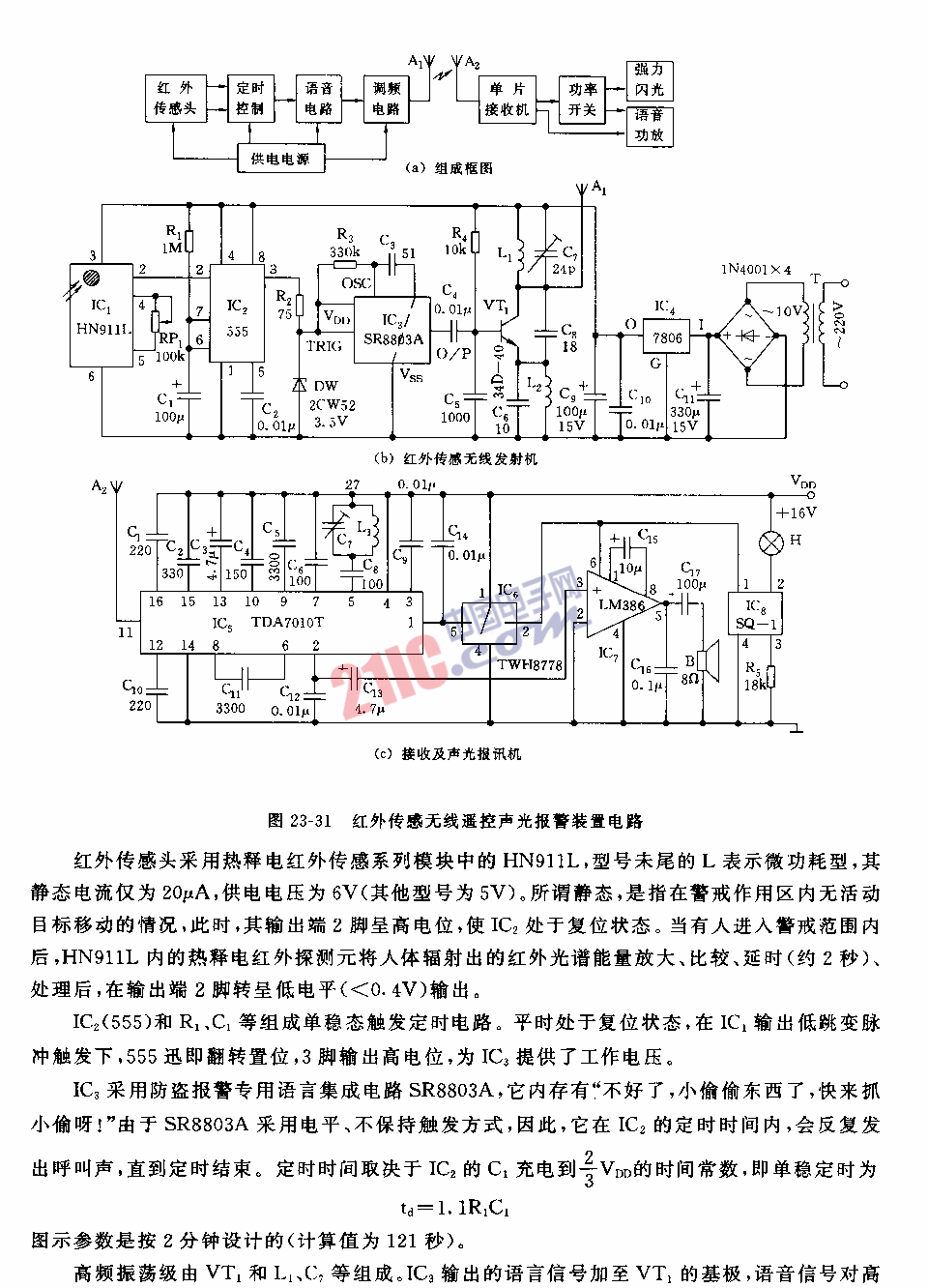 紅外傳感無(wú)線遙控聲光報(bào)警裝置電路圖 src="/21ic_image/21icimage/200903/73e4575327b524c13a74c1d222ccf292.gif" width=600 border=0>