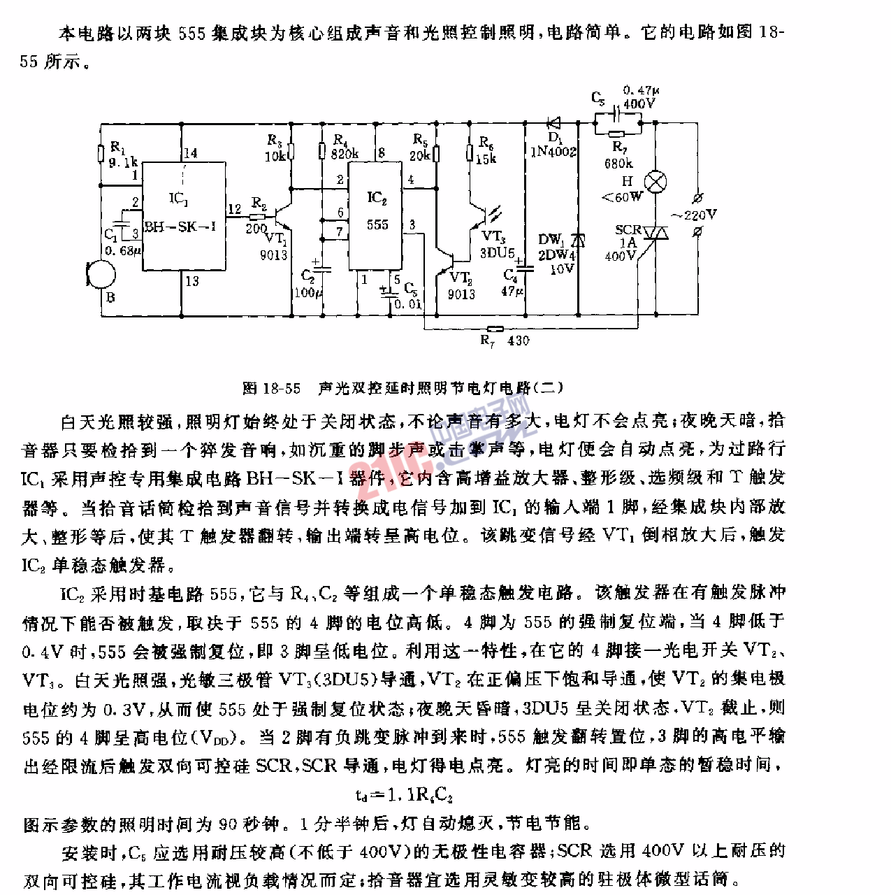 555聲光雙控延時(shí)照明節(jié)電燈電路(二)