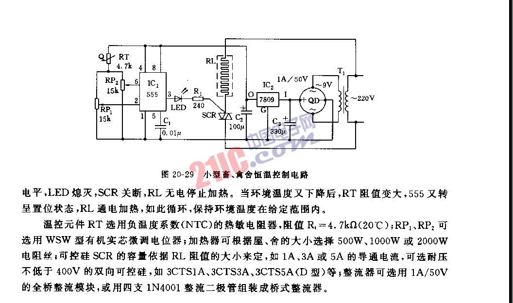 555小型畜、禽舍恒溫控制電路圖