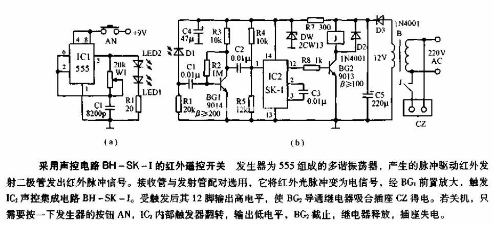 采用聲控紅外遙控開關(guān)電路圖