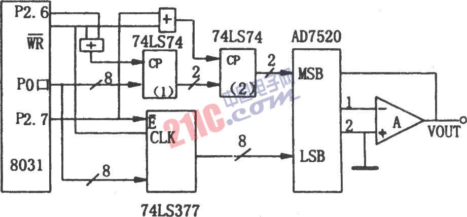 AD7520可克服“毛刺”現(xiàn)象的接口電路圖