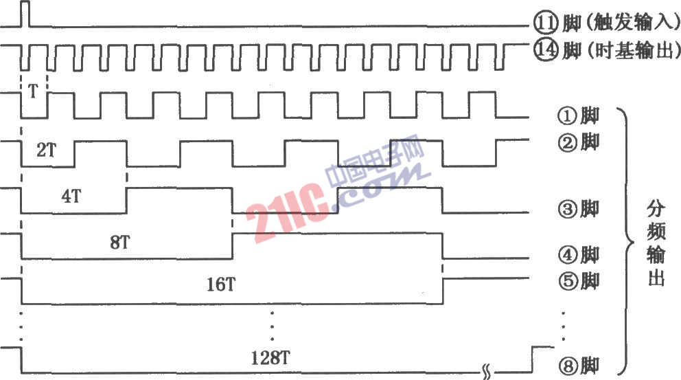 XR2240是一種集成計(jì)數(shù)式定時(shí)器,是基于555的改進(jìn)型器件,其內(nèi)部包含了一個(gè)由555構(gòu)成的振蕩器、8級(jí)分頻器以及控制邏輯電路等。