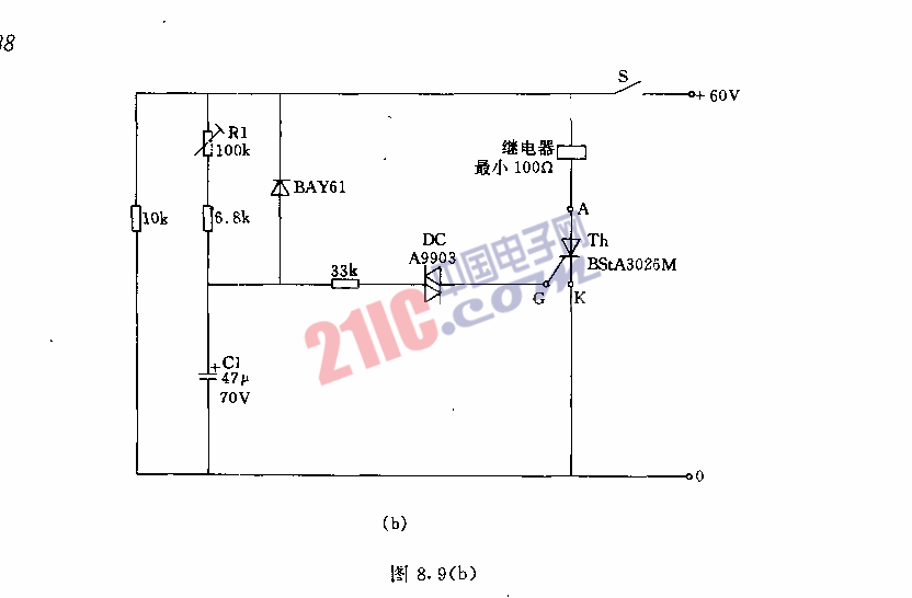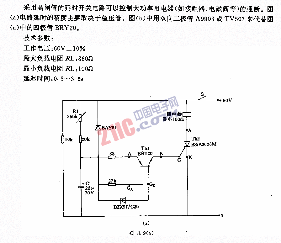 采用昌閘管的延時(shí)開關(guān)電路圖