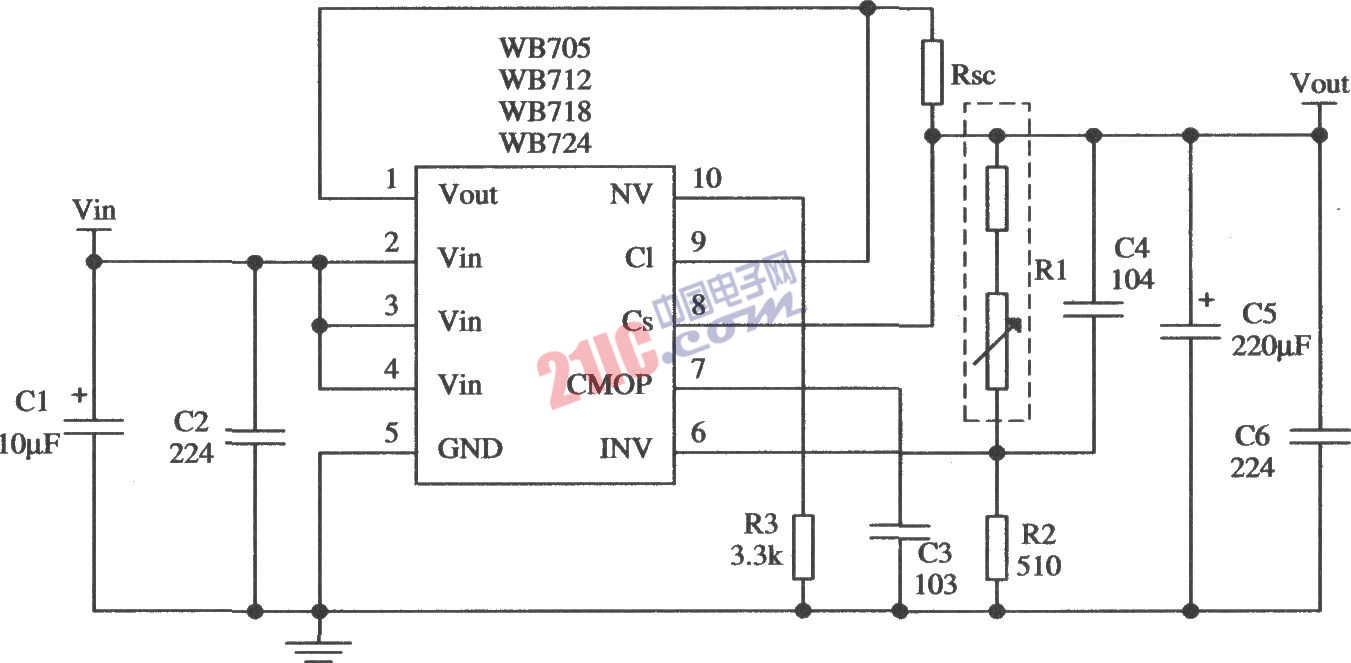 。式中:Rl0是穩(wěn)壓器內(nèi)部保護(hù)管的基極電阻,其值一般為200~250Ω,故上式的計(jì)算結(jié)果