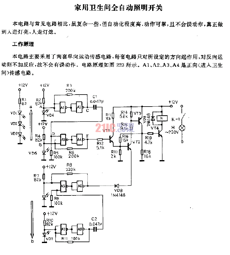 家用衛(wèi)生間全自動(dòng)照明開關(guān)電路圖