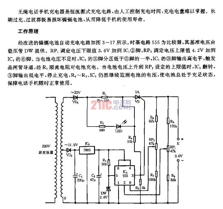 無(wú)繩電話(huà)手機(jī)自動(dòng)充電器電路圖