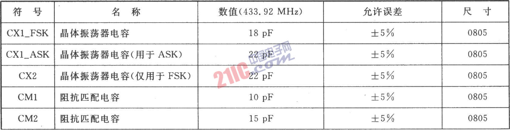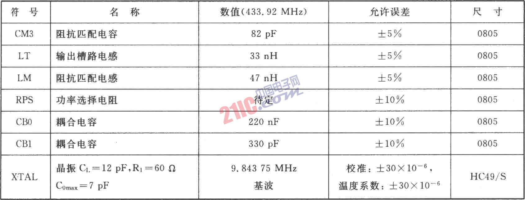 H72015是為315 MHz ISM頻段的應(yīng)用而設(shè)計的FSK/ASK發(fā)射器。其符合EN 300 220及類似標(biāo)準(zhǔn),可應(yīng)用于無鑰匙進(jìn)入系統(tǒng)、遙控/遙測系統(tǒng)、數(shù)據(jù)通信系統(tǒng)和安防等系統(tǒng)中。 主要技術(shù)特點如下: ?完全集成且穩(wěn)定的PLL; ?工作頻率為290~350 MHz; ?單端RF輸出; ?FSK調(diào)制通過晶振牽引使調(diào)制速率從DC~40 Kb/s; ?AS調(diào)制通過內(nèi)部功率放大器的導(dǎo)通/關(guān)閉鍵控法來實現(xiàn),ASK調(diào)制速率達(dá)40 Kb/s; ?電源電壓為l.9~5.5 V; ?有低電壓檢測器; ?工作電流為3.5~10.7 mA可調(diào),待機電流為0.1μA; ?輸出功率為-12~+8.5 dBm可調(diào)。