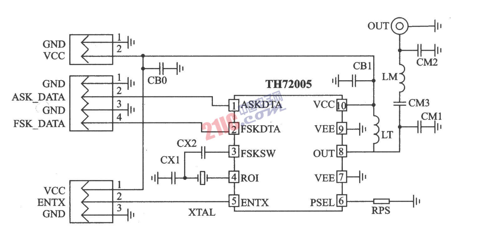 TH72005的應(yīng)用電路 TH72005應(yīng)用電路的元器件參數(shù)