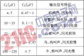 [導(dǎo)讀] 由SGZ07聲、光報(bào)警集成電路構(gòu)成雙頻率聲、光信號(hào)源電路 C1、C2與輸出信號(hào)對(duì)應(yīng)關(guān)系