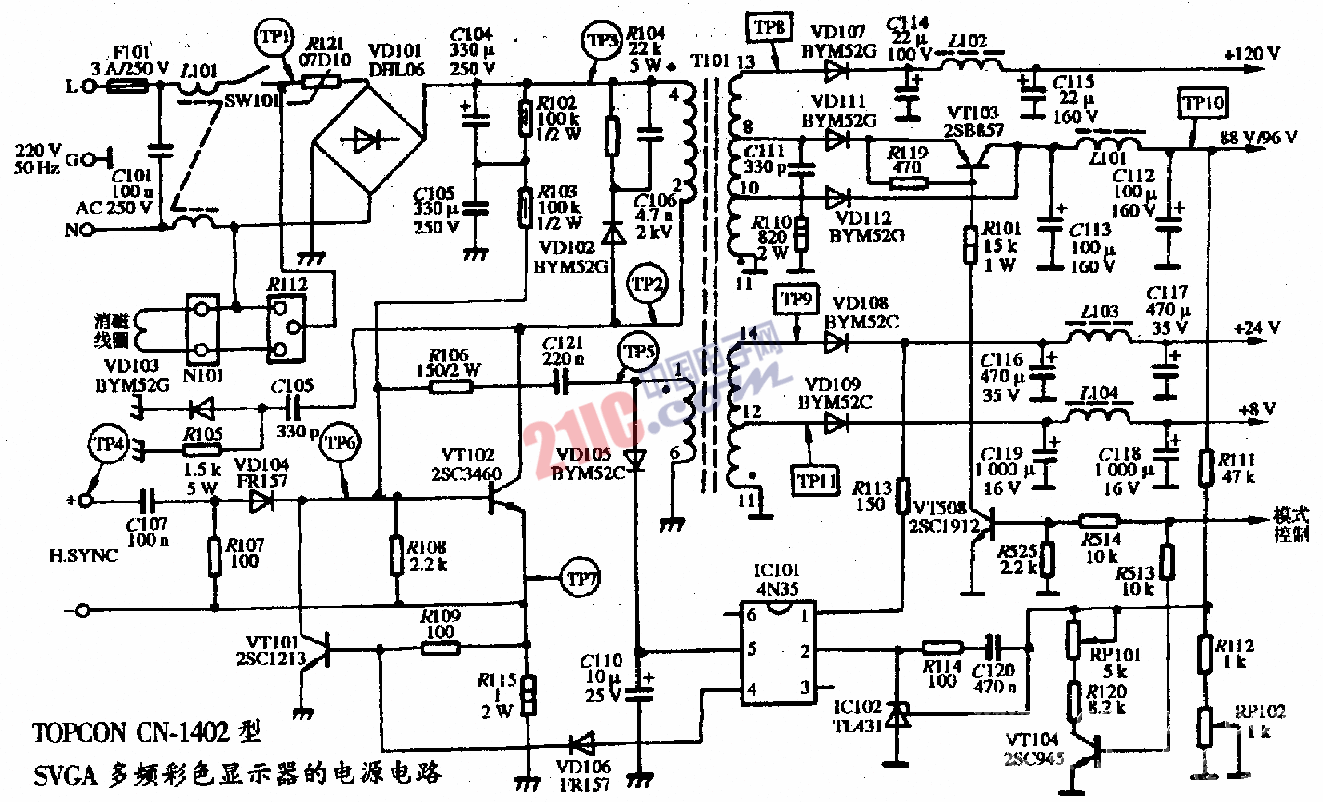 TOPCON CN-1402型SVGA彩色顯示器的電源電路圖