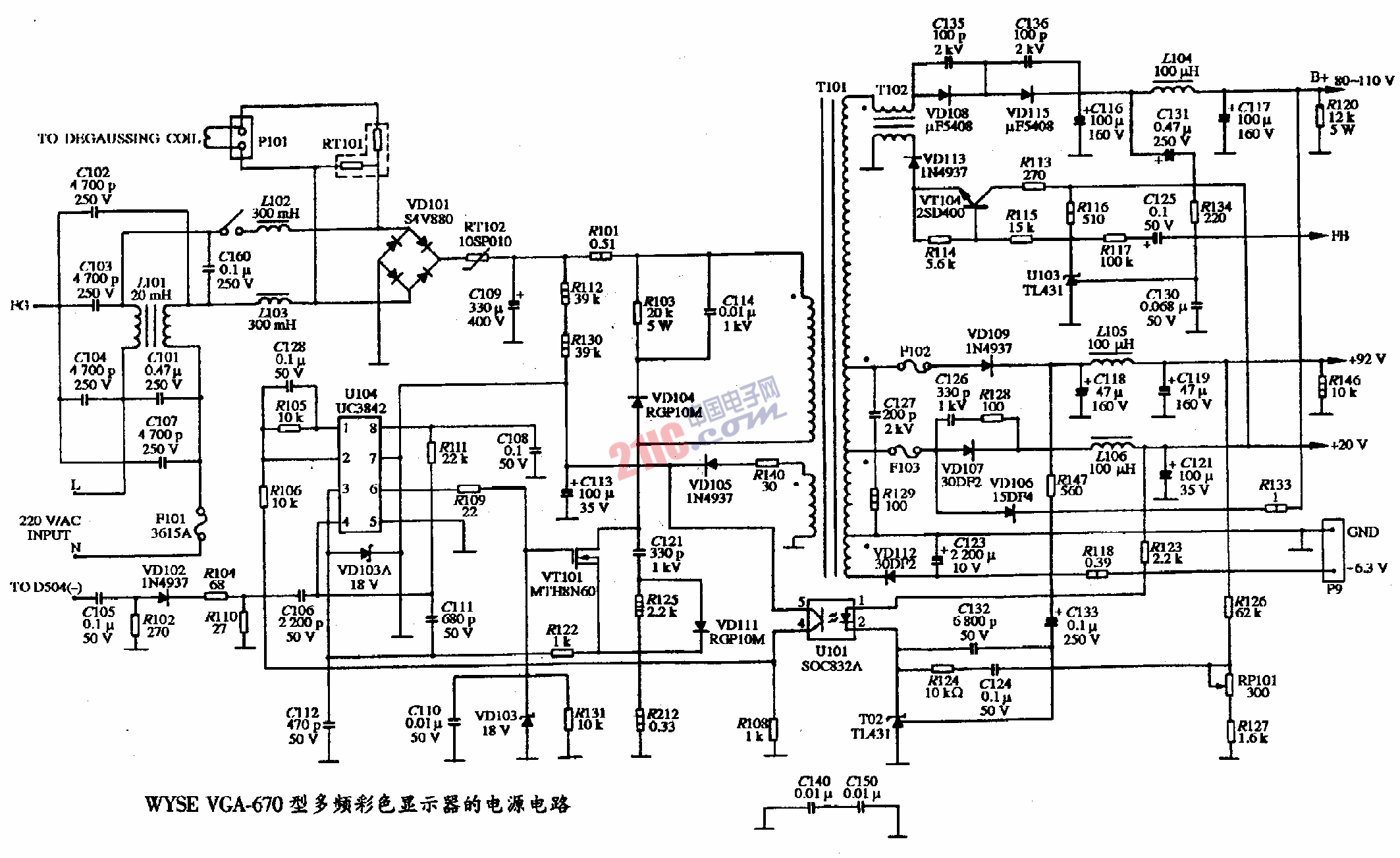 WYSE VGA-670型多頻彩色顯示器的電源電路圖