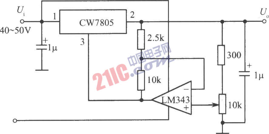 由CW7800和LM343構(gòu)成1~35V的可調(diào)輸出穩(wěn)壓電源電路