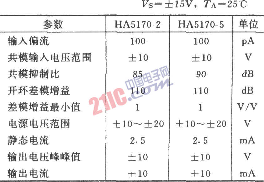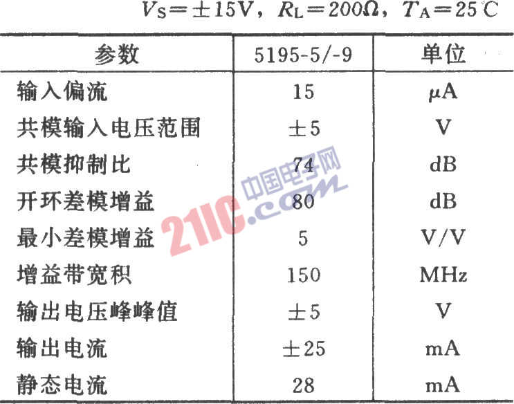 如圖所示為高速儀用反相放大電路。該電路采用了HA5195高速寬帶集成運放作為輸出級,其壓擺率高達160V/μs,其增益帶寬積(GBP)為150MHz,能對5V輸出階躍電壓在100ns內達到0.01%的電平精度,HA5195運放用±l5V電源供電,額定輸出擺幅為±5V。電路中的A1是場效應管輸入型精密運放HA5170。A1主要解決失調電壓及漂移問題,A2提供較高的速度和帶負載能力,由此電路的綜合性能能更好地滿足使用要求。