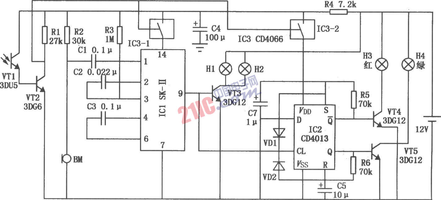 自動(dòng)電子路標(biāo)的電路如圖所示,它主要由聲控電路、振蕩電路及驅(qū)動(dòng)顯示電路等部分組成。