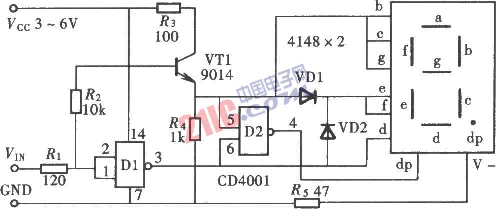 如圖所示為能夠測試和顯示包括高、低電平和開路狀態(tài)的邏輯筆。